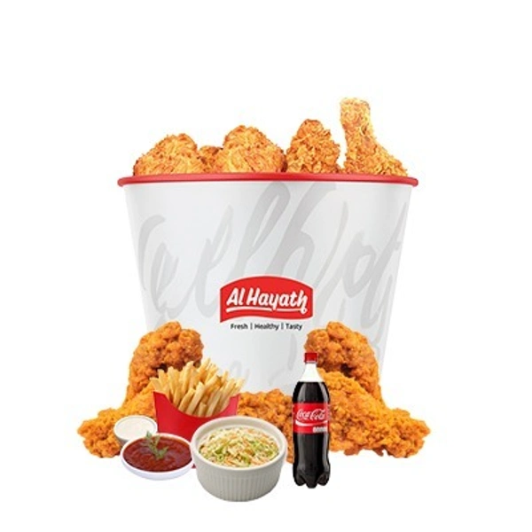 9pcs Fried Chicken, 3pcs Garlic Paste, 1pcs Coleslaw, 3pcs bun,6 ketchup ,French fries 100gm,Softdrinks 1ltr