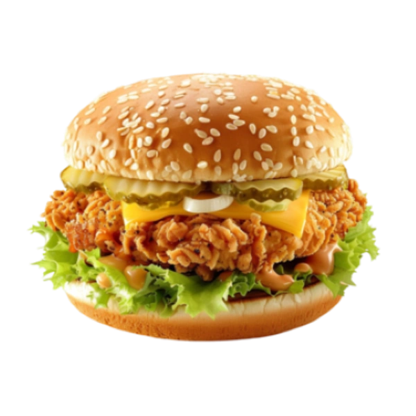 Mini Zinger Burger Ready-to-eat, a crispy, spicy chicken patty tucked in a soft bun with fresh veggies and a zesty sauce. A perfect bite-sized treat for burger lovers!